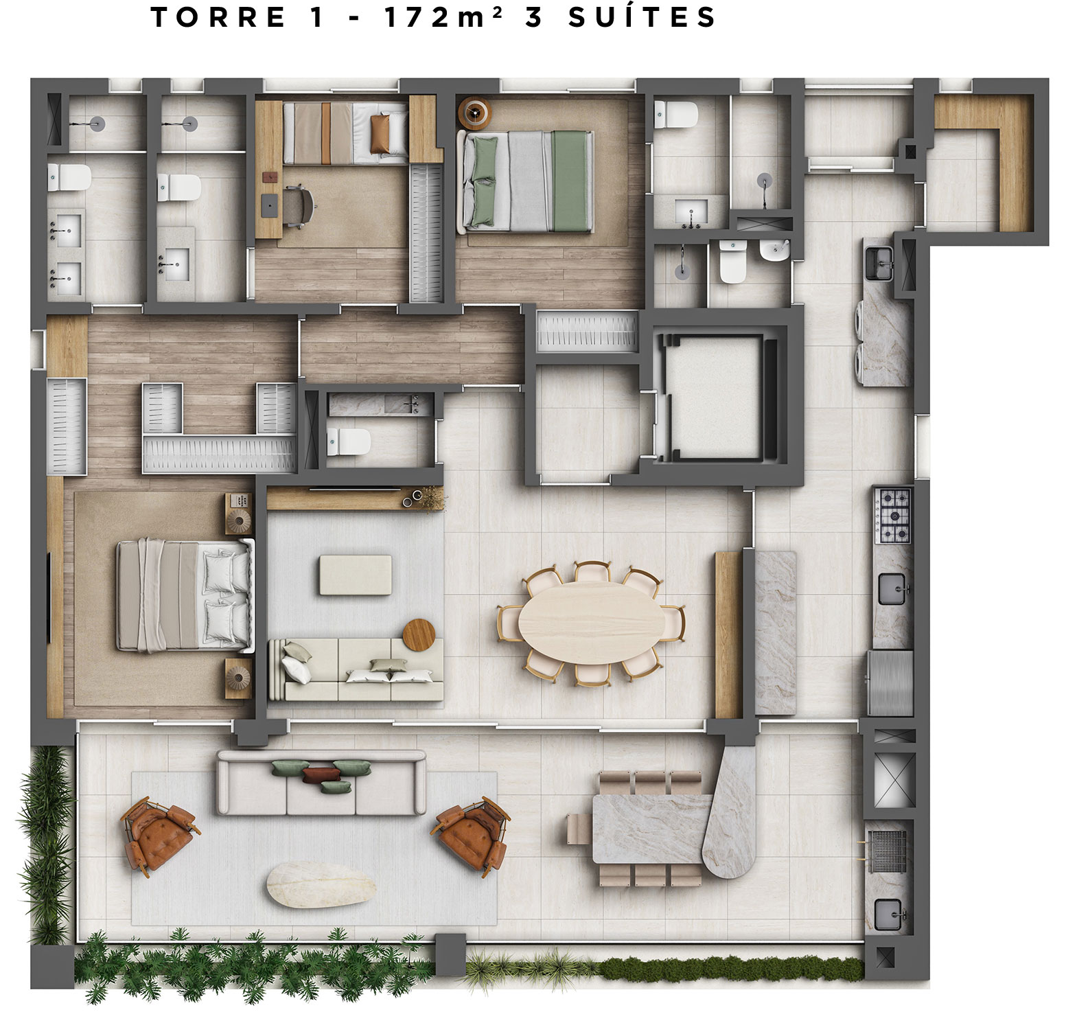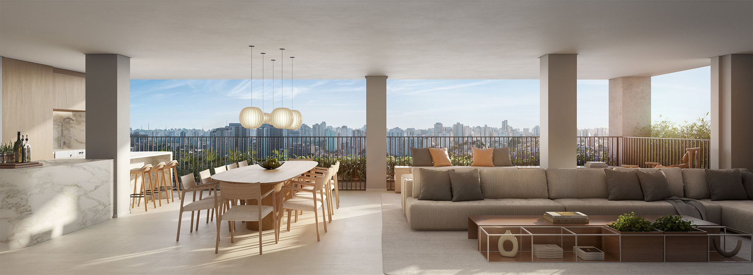 Reconhecido por projetar edifícios que se tornaram marcos na cidade, o escritório Aflalo/Gasparini inovou mais uma vez na concepção de um projeto único. A união da tradição com a expertise de soluções arquitetônicas exclusivas resultou em 3 edifícios planejados em cada detalhe. O destaque fica por conta da extensão dos ambientes internos, que proporcionam vista para terraços arborizados, como se cada morador contemplasse seu próprio jardim. Uma composição perfeita entre a estética da arquitetura e o melhor do urbanismo para seus dias.