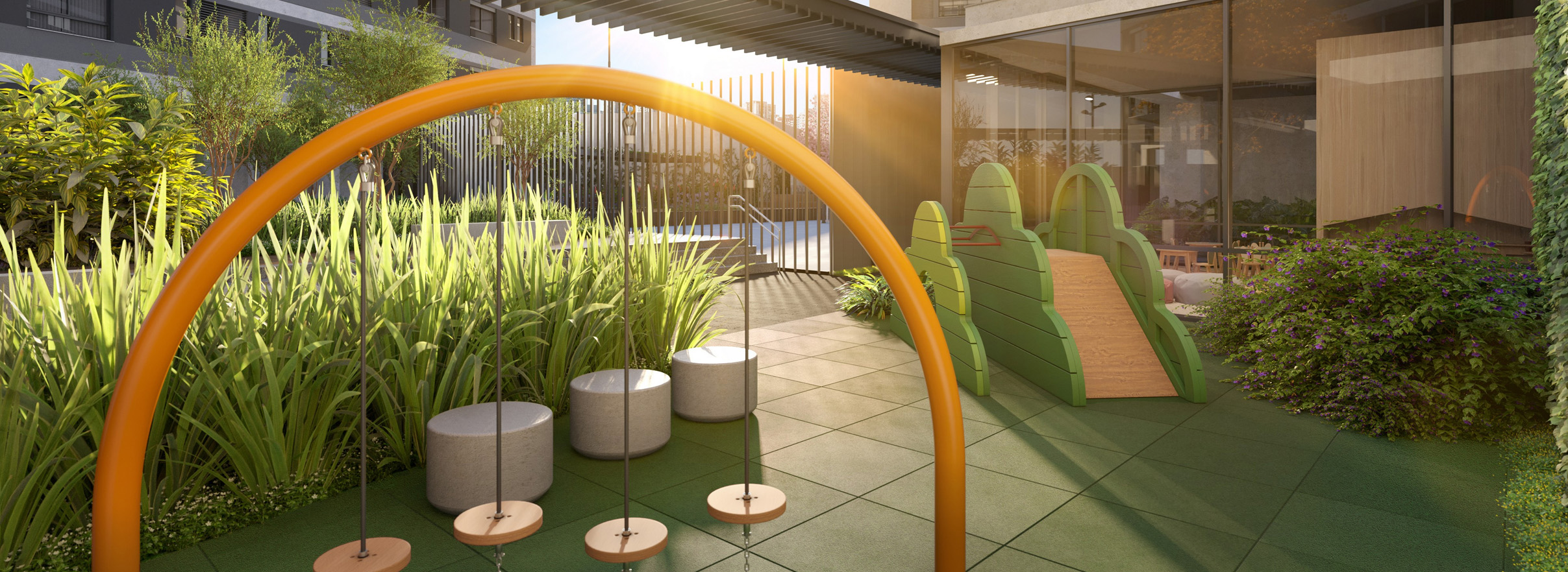 Compreender as potencialidades dos espaços externos advindos da implantação das torre residenciais, configurando um grande pátio central, eis a chave da questão para a elaboração do Projeto de Paisagismo do empreendimento Monã. Exploramos assim as melhores relações espaciais entre dentro e fora, luz e sombra e entre fluxos e perspectivas de modo a criarmos belos e confortáveis lugares de estar, relaxar, jogar, brincar e conviver.